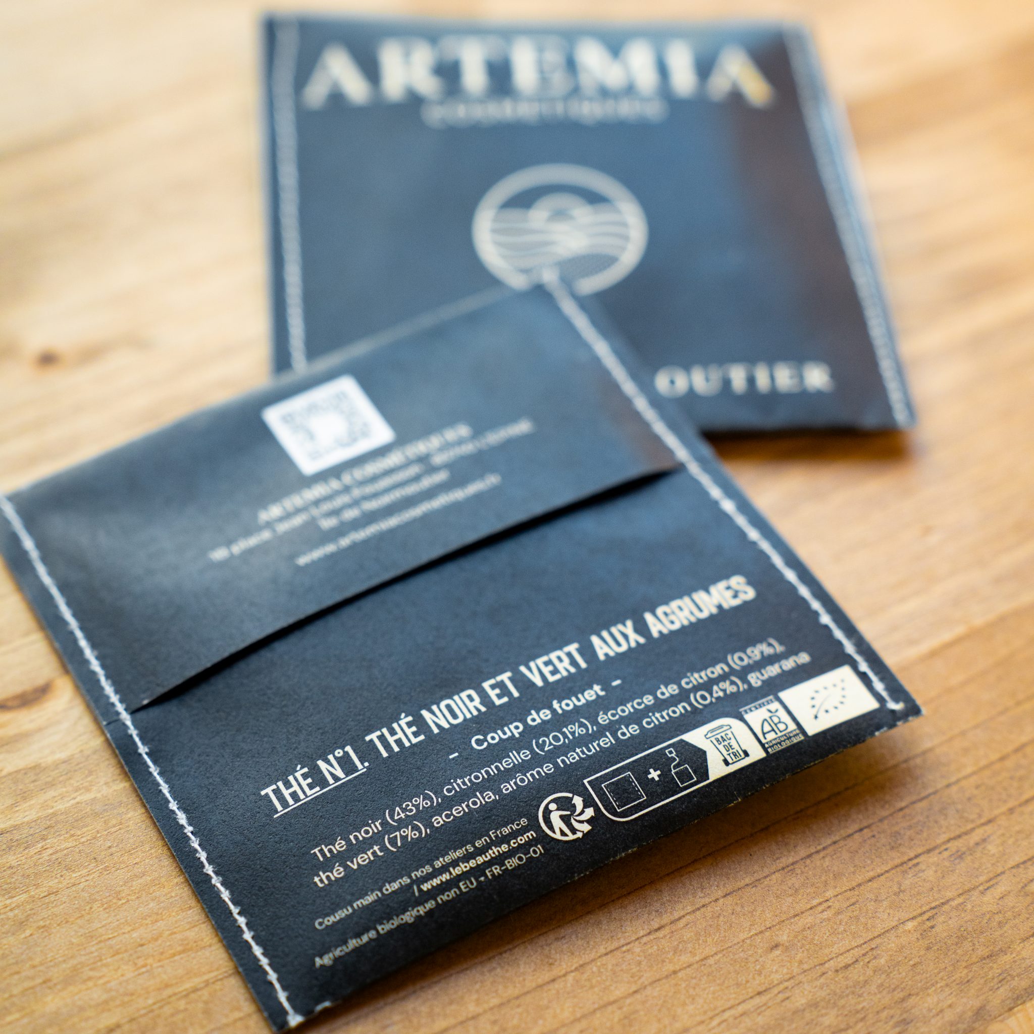 Dès 90€ d’achats, recevez en cadeau une pochette dégustation comprenant des sachets de thé Artemia cousus main dans des ateliers français (agriculture biologique).